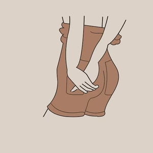 Trek het aan via de voeten en schuif het vervolgens omhoog tot aan de heupen.